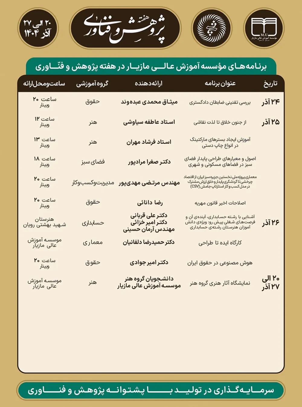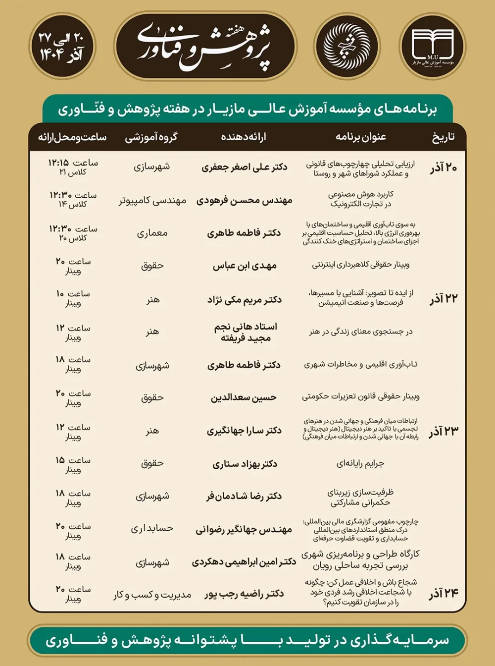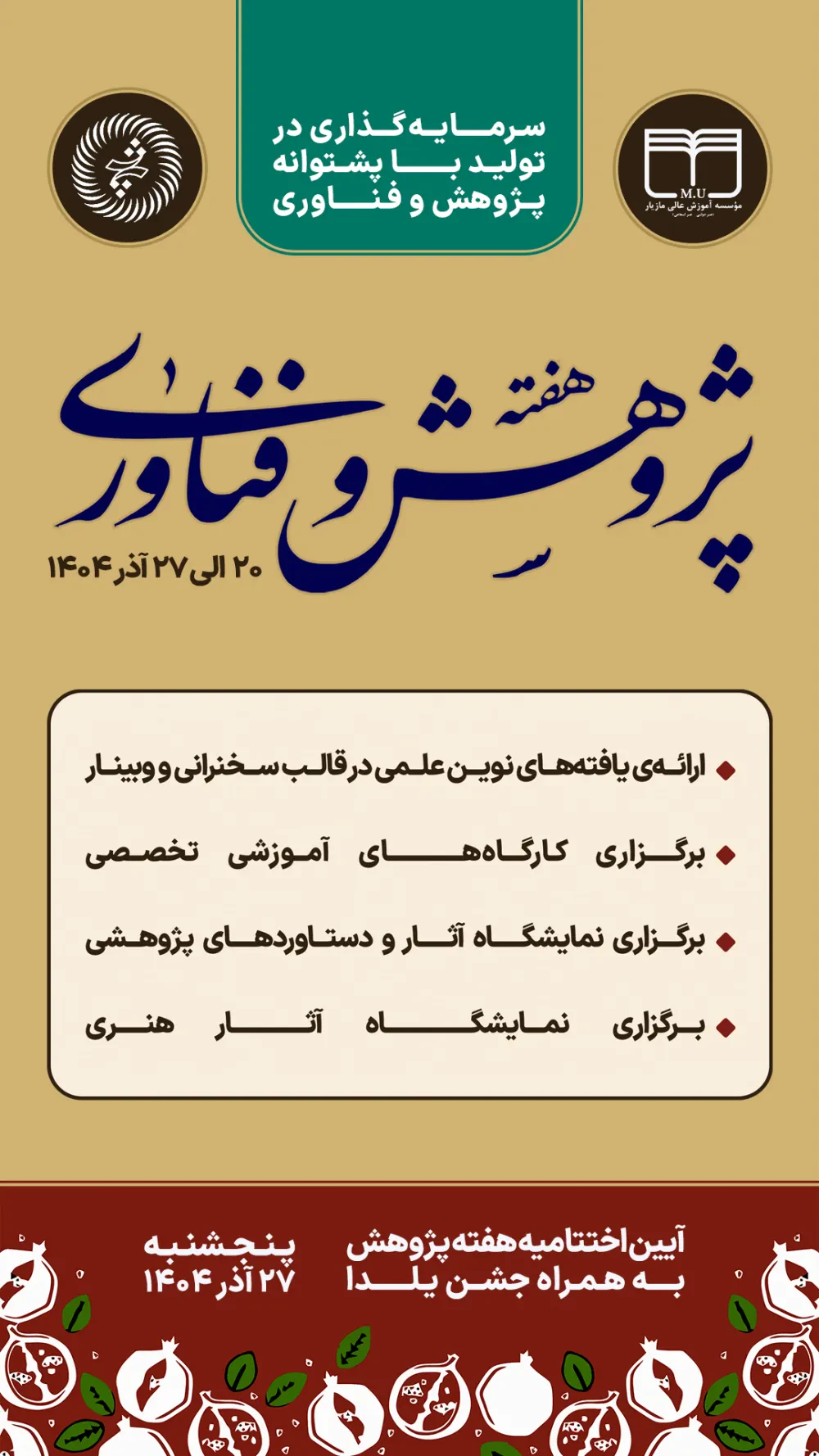 برگزاری هفته پژوهش و فناوری سال ۱۴۰۴ و مراسم اختتامیه همراه با جشن شب یلدا